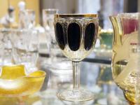 Čiré a zlacené lisované sklo. V historizujícím romantickém stylu. Sklenička...