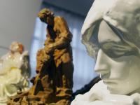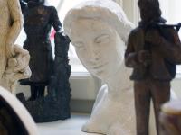Sádra se smetanovou bílou glazurou. Nesignováno. Portrétní bysta ženy s mírně...