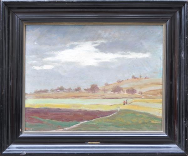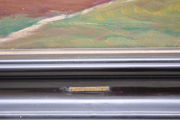 doposud neznámá práce významného českého krajináře Mařákovy školy Antonína Slavíčka (1870-1910), olejomalba na lepence, 50x62 cm, v dobovém černě lakovaném rámu, kolem roku 1903; znalecké posudky PhDr. Jan Štíbr a Jana Orlíková, která ”objevení obrazu považuje za důležitý příspěvek do slavíčkovského bádání”
