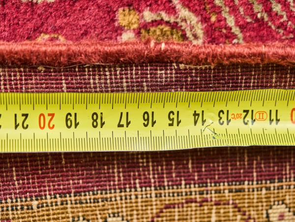 Rozměry: délka 329cm, šířka s třásněmi 237cm, šířka bez třásní 230cm, výška vlasu 0,5cm