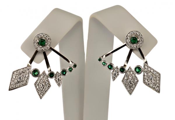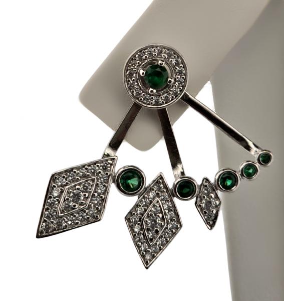 Stříbrné naušnice 2v1 - Vějíř se zelenými zirkony - detail inzerátu