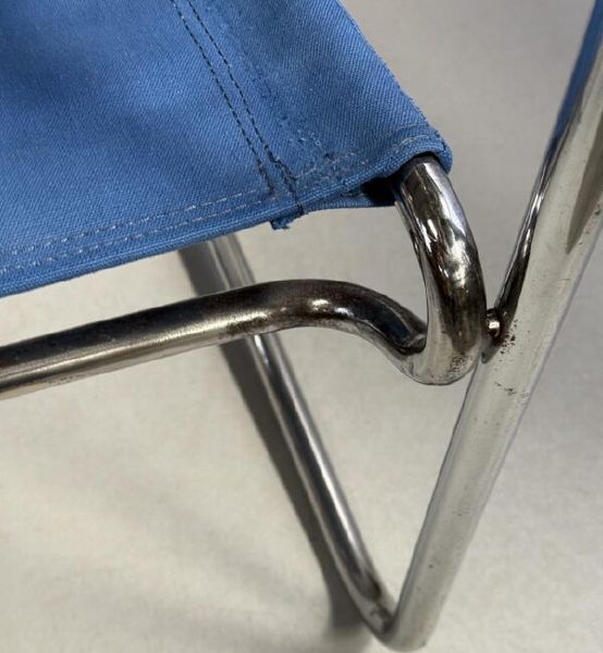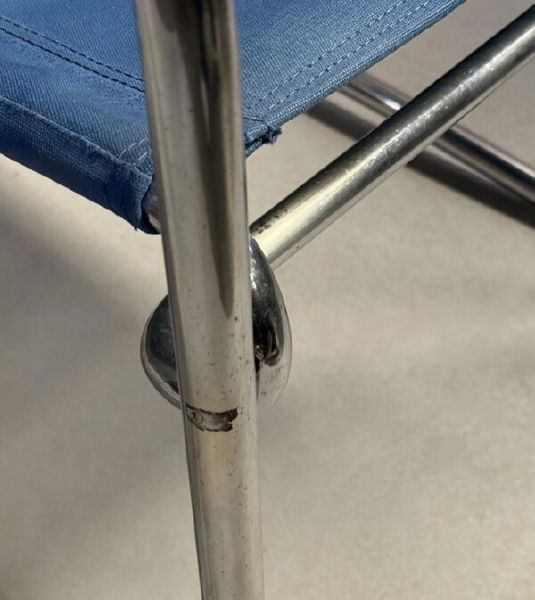 Ocelová chromovaná konstrukce v původním stavu – pouze vyčištěna a vyleštěna (znatelné stáří i používání).