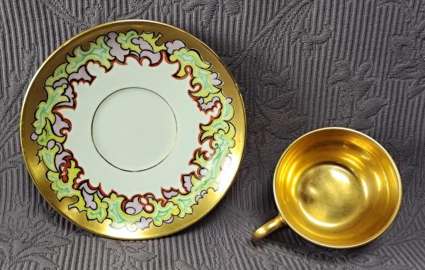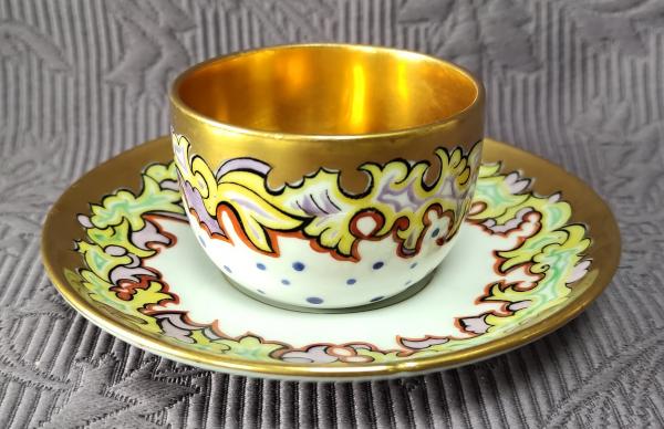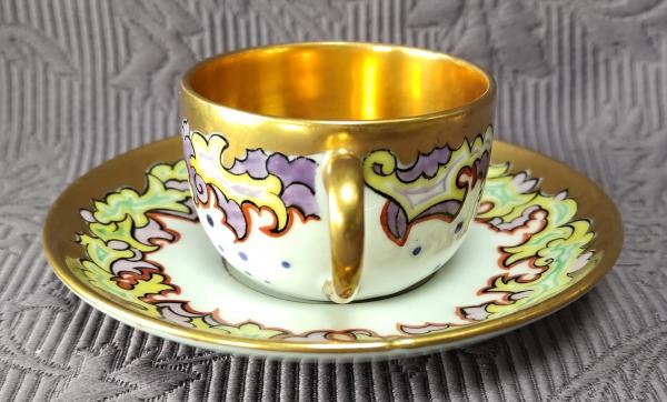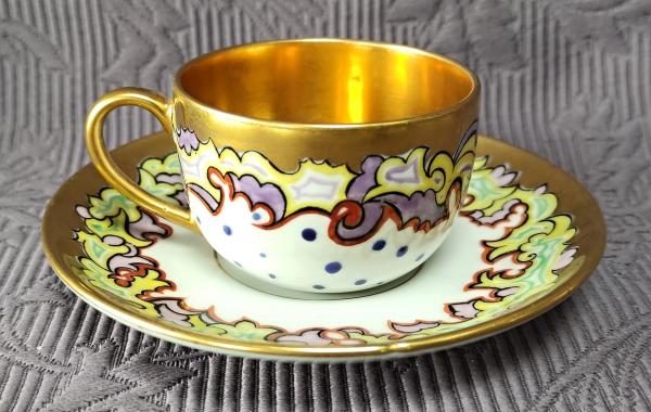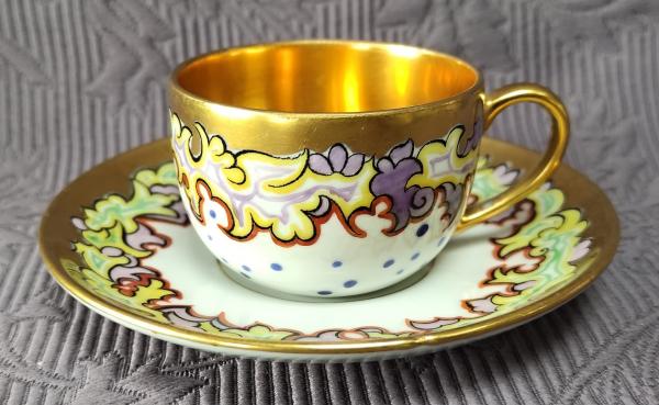 Popis: Porcelánový starožitný Art Deco šálek s podšálkem, zdobený florálními...