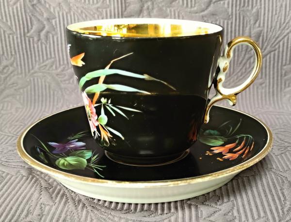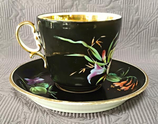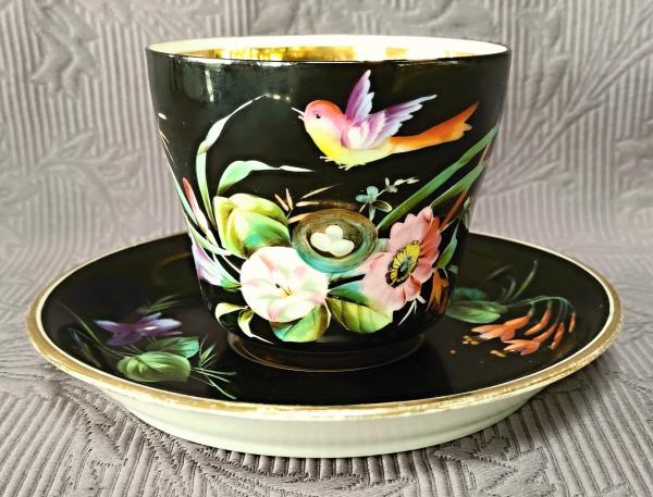Starožitnost: Šálek s podšálkem, ruční malba, 19. stol.