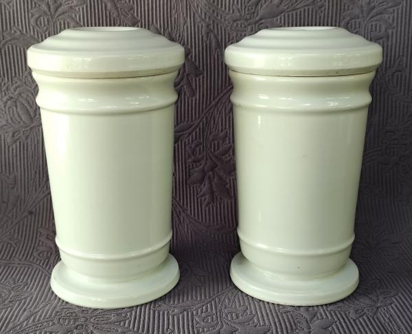 UVEDENÝ PŘEDMĚT JE MOŽNÉ VIDĚT PO PŘEDCHOZÍ DOMLUVĚ, NENÍ NA PRODEJNĚ ( výška 17 cm, široká 9,7 cm, v dobrém stavu, cena za 2 ks )