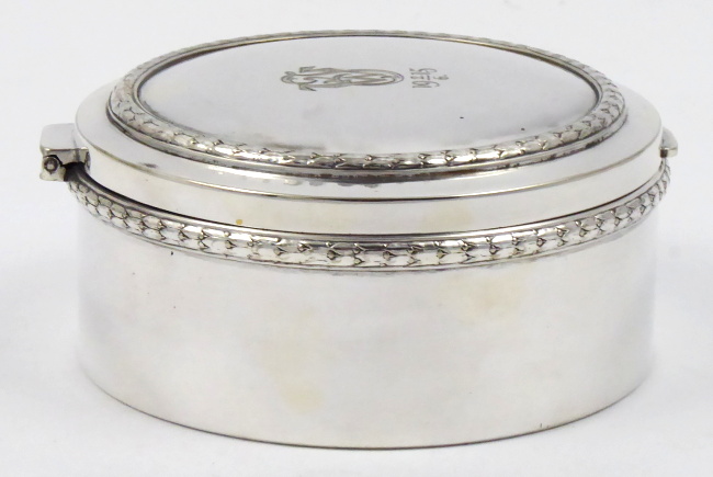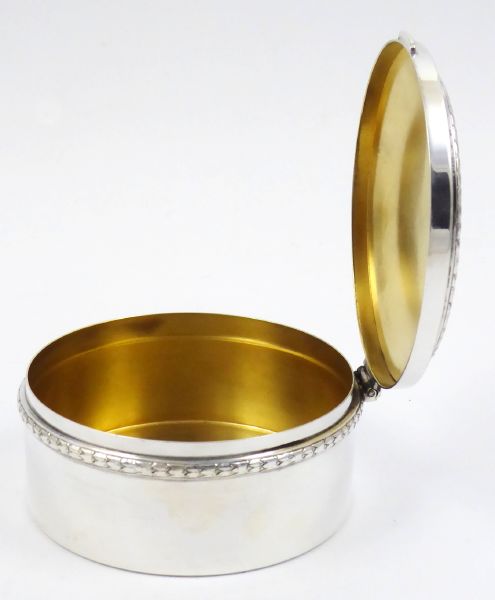 Starožitnost: 238. POSTŘÍBŘENÁ KULATÁ DÓZA