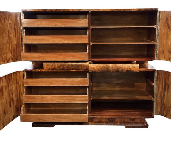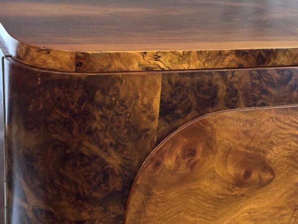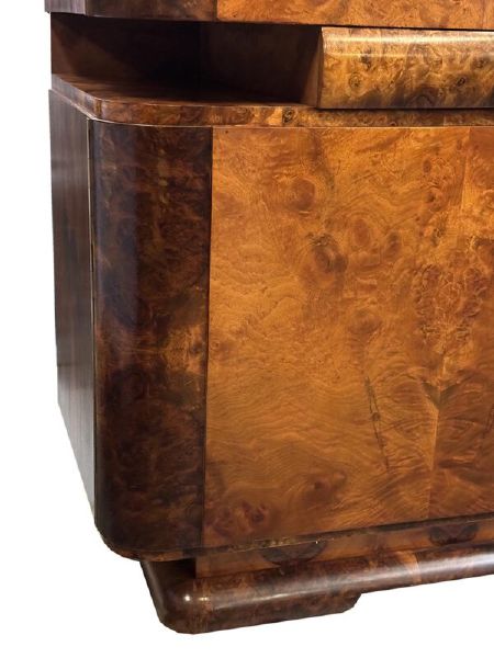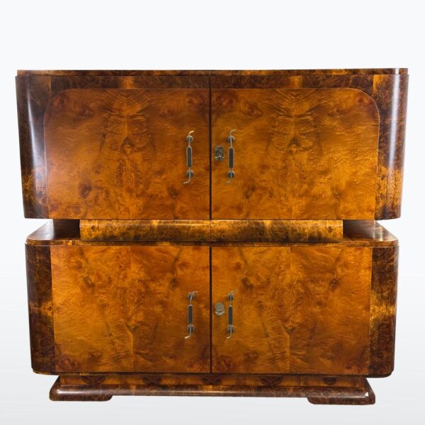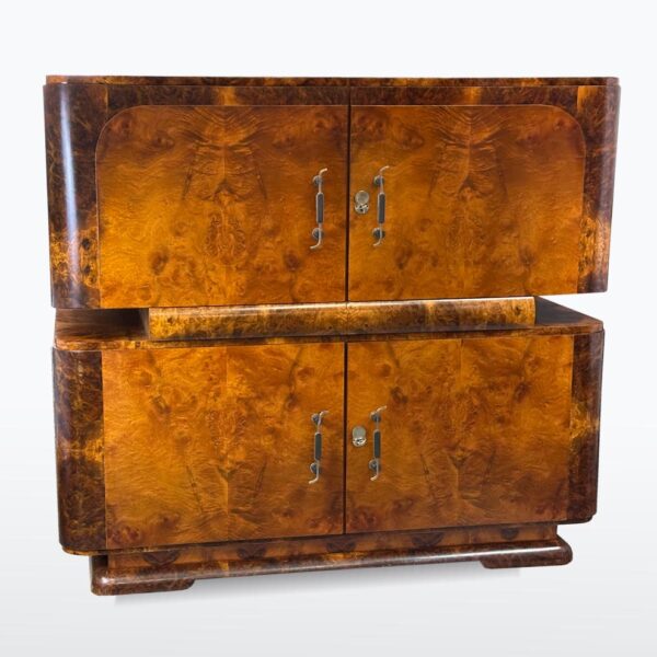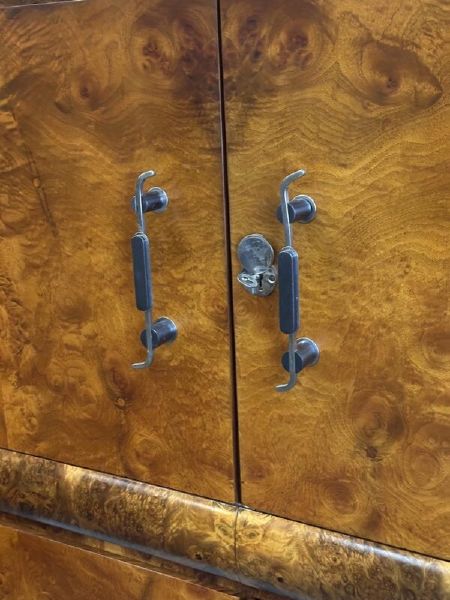 luxusní kresbou ořechové kořenice, masiv, kovové úchytky, restaurováno