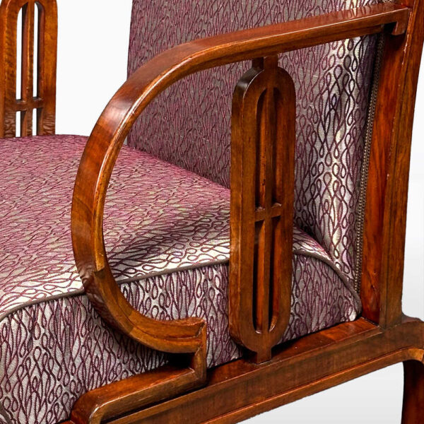 materiál: ořech, jasan, čalounění, zdobeno linkovou a florální intarzií,...