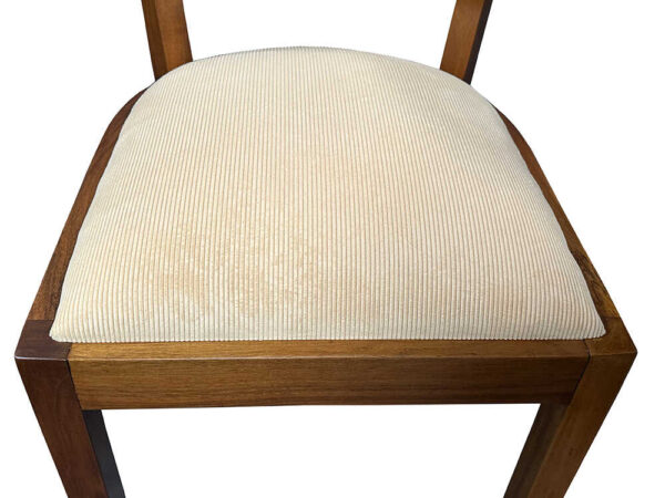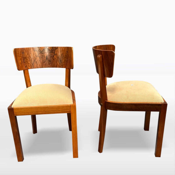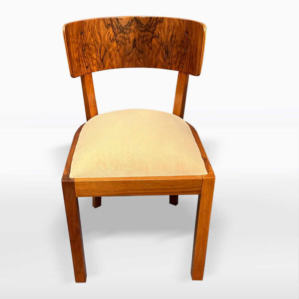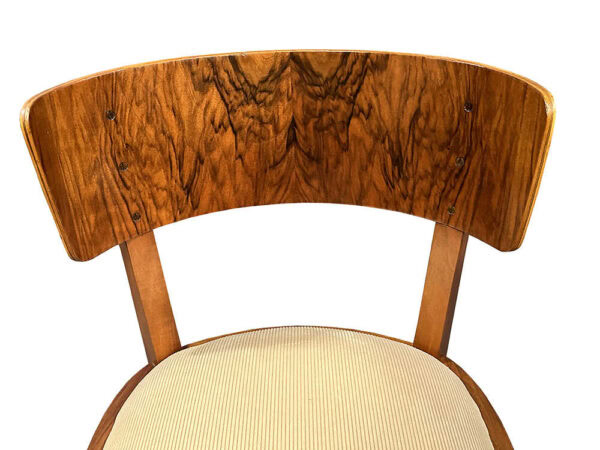 materiál: bukový masiv v kombinaci s dýhovou překližkou ořechem, opraveno a nově očalouněno