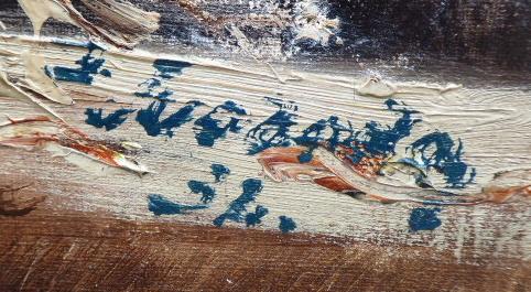 Olej na plátně 60 x 73 cm, vlevo dole signatura s datací 1933. Vzadu přípis...