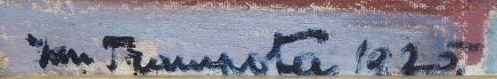 Olej na plátně 35 cm x 22 cm. Signováno vlevo dole nečitelně s datací 1930....