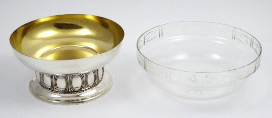 Ručně broušené sklo, stříbro AG 800/994 g btto. , mistrovská značka AP,...
