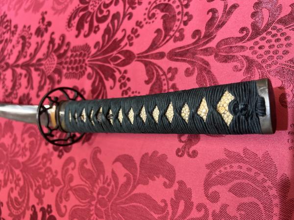 Tato dýka s výrazně zakřivenou čepelí a zdobenou rukojetí je nádherným...