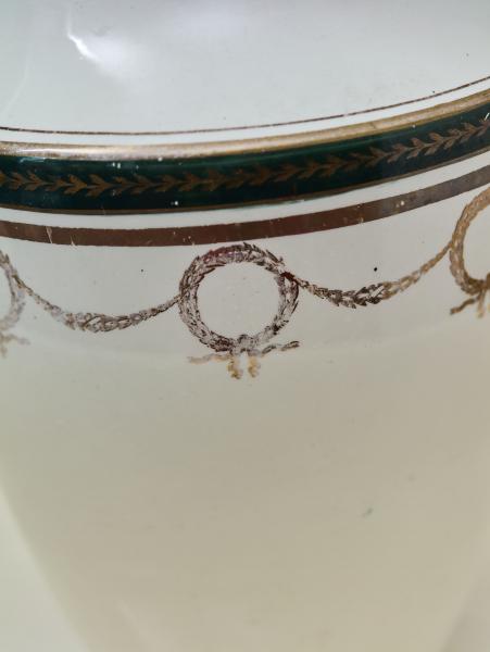 Souprava je v dobrém původním stavu, bez prasklin, s přirozenou patinou a drobnými stopami stáří, které podtrhují její autenticitu. Vhodná jako dekorativní doplněk historického interiéru, pro sběratele nebo jako stylový prvek do klasických koupelen či ložnic.