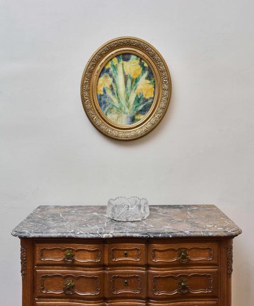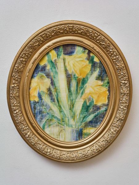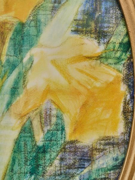 Starožitnost: Nadčasový obraz s motivem žlutých narcisů v oválné
