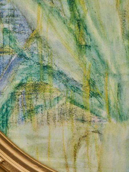 Obraz je zasazen do krásného oválného rámu s plastickým zlaceným dekorem, který podtrhuje jeho estetickou hodnotu a dodává mu elegantní vzhled. Díky svým rozměrům se hodí jak do menšího salonu či ložnice, tak i jako výrazný doplněk většího interiéru.