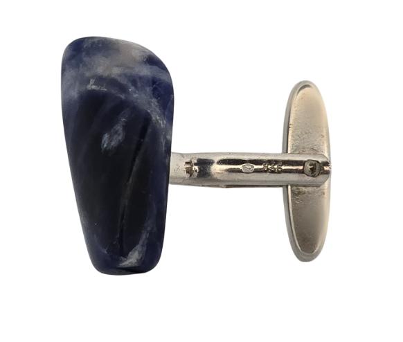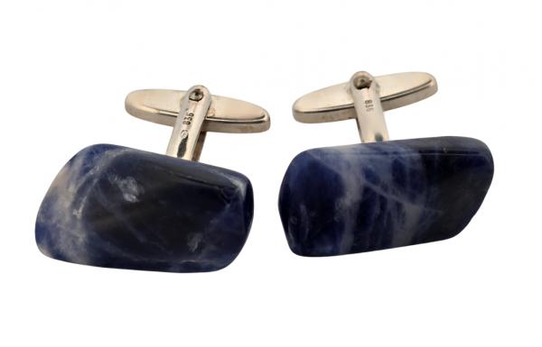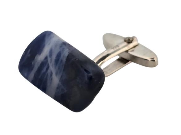 Popis: Stříbrné unikátní manžetové knoflíčky s přírodním modrým žíhaným kamenem lapis lazuli.
