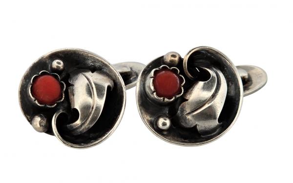 Popis: Výjimečné stříbrné starožitné secesní manžetové knoflíčky s přírodním červeným mořským korálem. Zdobené florálními secesními motivy. Na manžetových knoflíčcích jsou celkem 2 kusy přírodního mořského korálu dobré kvality o průměru cca 9 mm. Elegantní nadčasový secesní šperk.