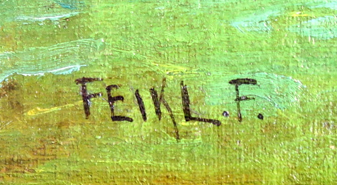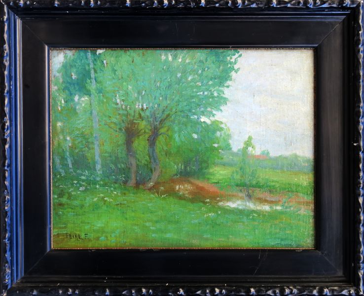Krajina s vrbami a potokem, olej/plátno fix. na kartonu, signováno vlevo dole F. Feikl, 32 x 42 cm, rám