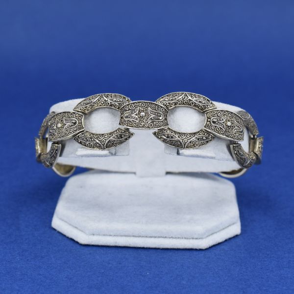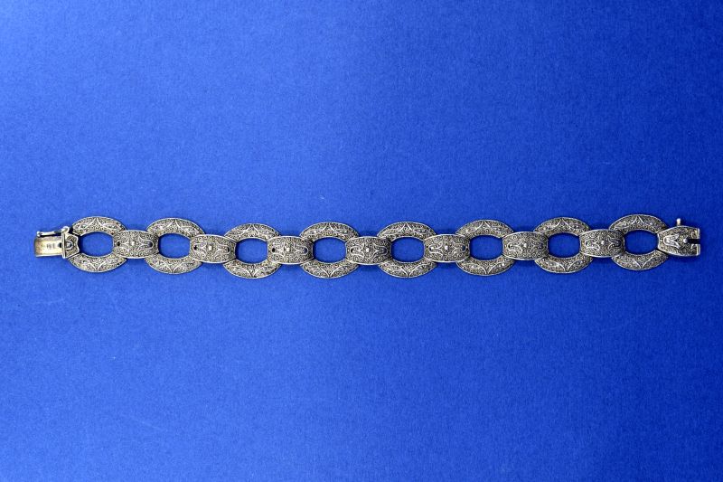 925/1000, v. 18,55 g, Theodor Fahrner, Pforzheim, kolem 1930, články zdobené markazity, značeno FAHRNER, délka 18 cm, čs. punc