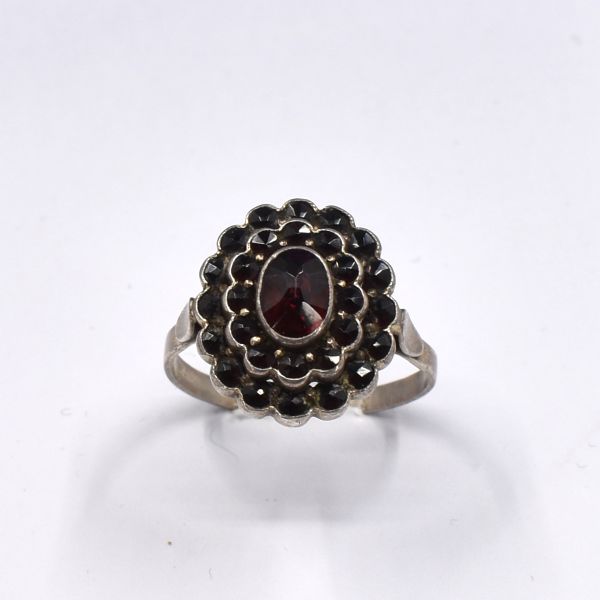 Starožitnost: Stříbrný granátový prsten