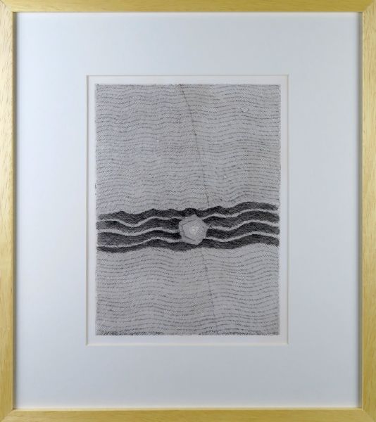 Bez názvu II., suchá jehla/papír, na zadní straně pozůstalostní razítko a signováno jeho manželkou Adriana Šimotová Johnová, 29,5 x 21,5 cm, pasparta, sklo, rám