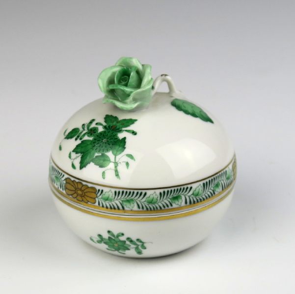 2. polovina 20. století, Maďarsko, Herend, porcelán, zelení malované květy, tištěná modrá značka, průměr 7,5 cm