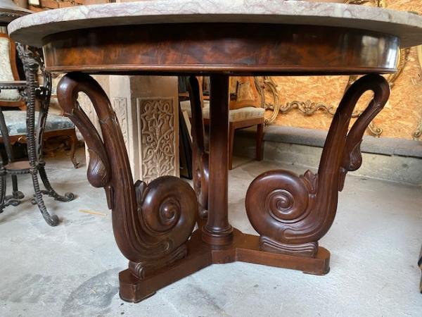 Jídelní stůl kulatý se zdobenou trnoží a mramorovou deskou 125*80.
