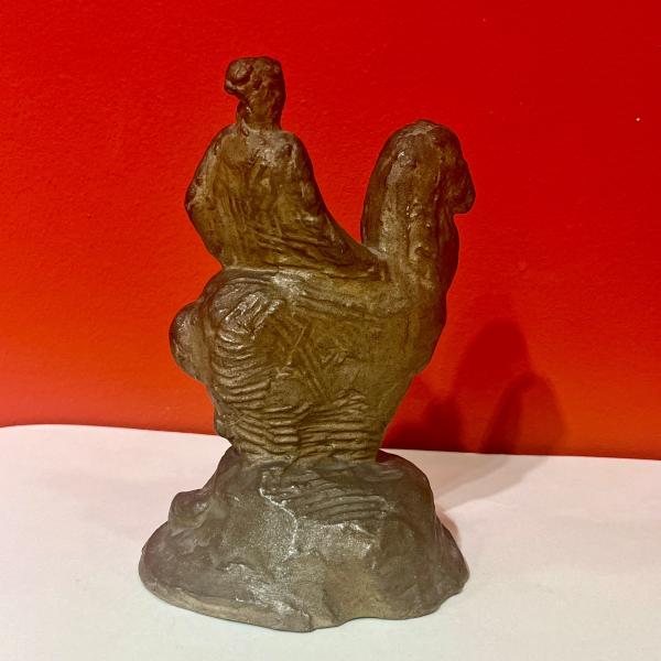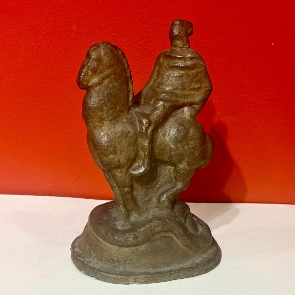 bronzová krbová socha, putto držící otep slámy s věncem, Josef Drahoňovský...