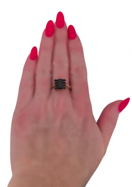 Starožitnost: Stříbrný prsten s granáty, pozlacený