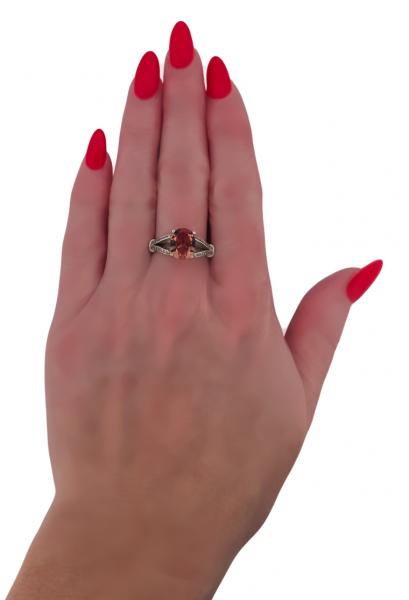 Popis: Stříbrný prsten se syntetickým sultanitem oválného tvaru, zdobený čirými zirkony. Sultanit je překrásně třpytivý, mění barvu dle intenzity a lomu světla (hnědá, zelená, oranžová, růžová, žlutá, modrá). Jemný elegantní vzhled.