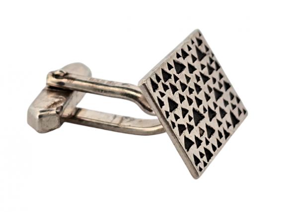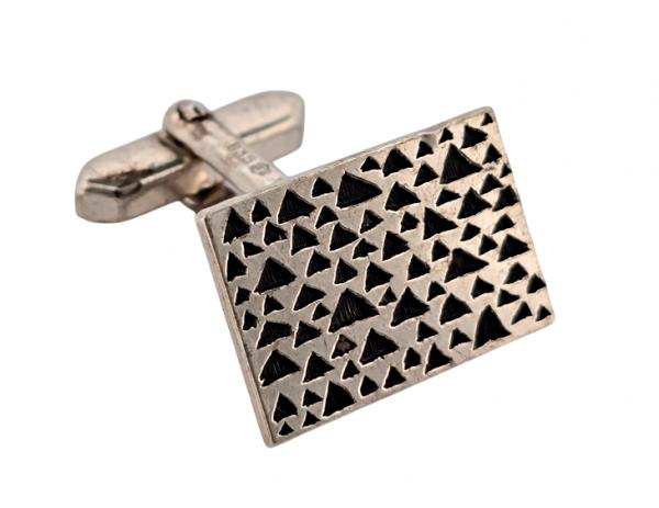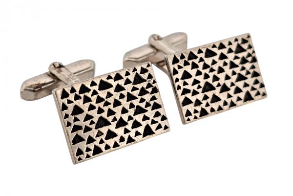 Popis: Stříbrné manžetové knoflíčky obdélníkového tvaru s drobnými intagliemi trojúhelníčků.