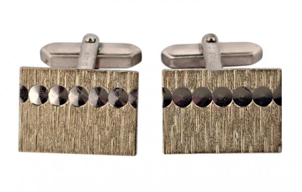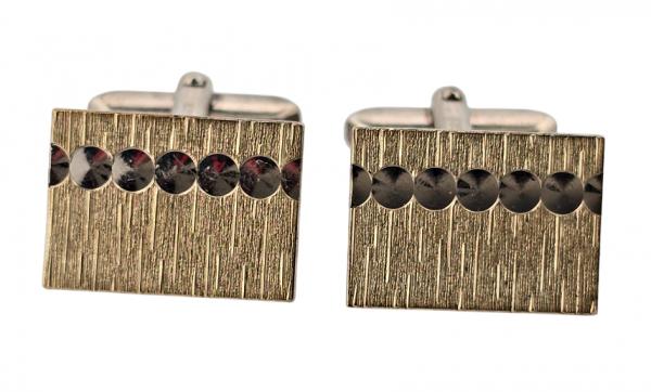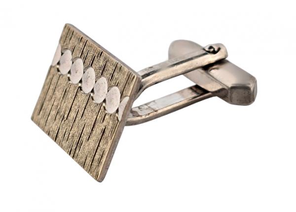 Popis: Stříbrné manžetové knoflíčky obdélníkového tvaru s vkládanými stříbrnými oválky na zlaceném hrubém podkladu.