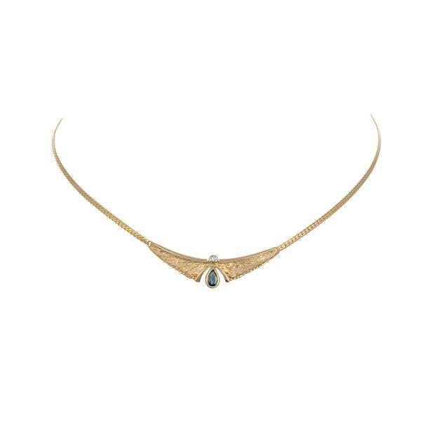 Starožitnost: Zlatý náhrdelník s přírodním safírem a diamantem