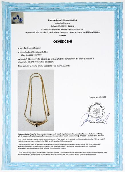 Zlatý náhrdelník s přírodním safírem a diamantem - detail inzerátu