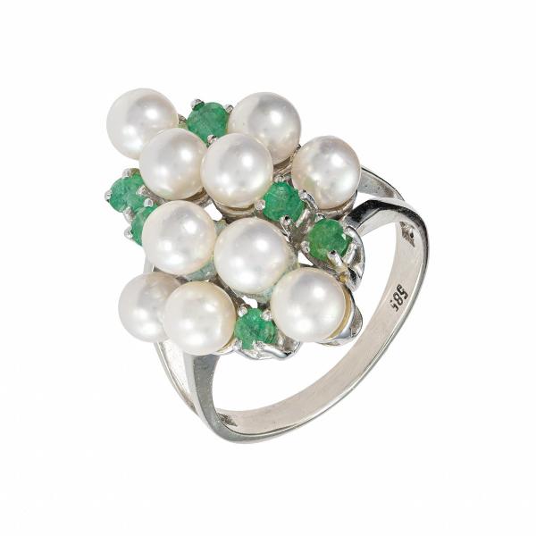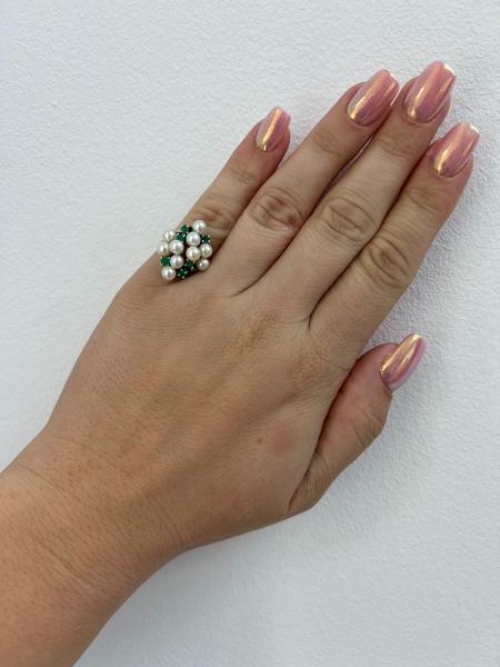Starožitnost: Zlatý prsten s přírodními diamanty a perlami Akoya