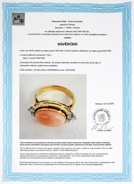 Zlatý prsten s přírodním korálem a diamanty - detail inzerátu