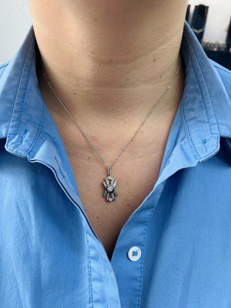 Bílozlatý přívěsek s diamanty a řetízkem