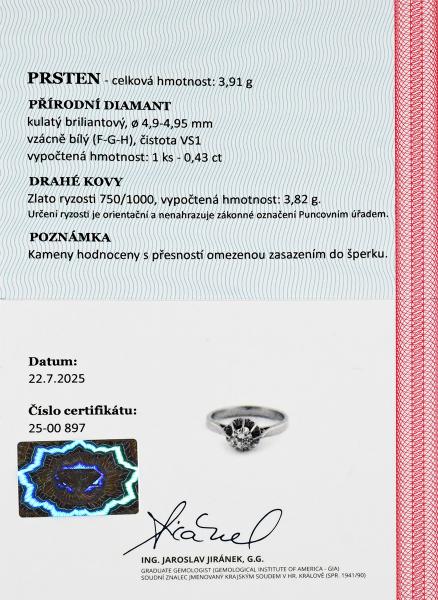 Zlatý prsten s přírodním diamantem 0,43 ct - detail inzerátu