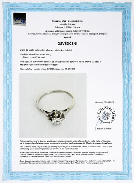 Starožitnost: Zlatý prsten s přírodním diamantem 0,43 ct