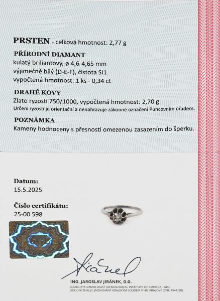 Zlatý prsten s přírodním diamantem 0,34 ct  - detail inzerátu