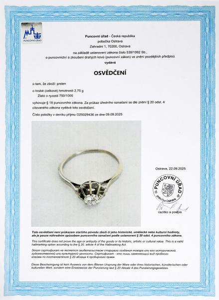Starožitnost: Zlatý prsten s přírodním diamantem 0,34 ct