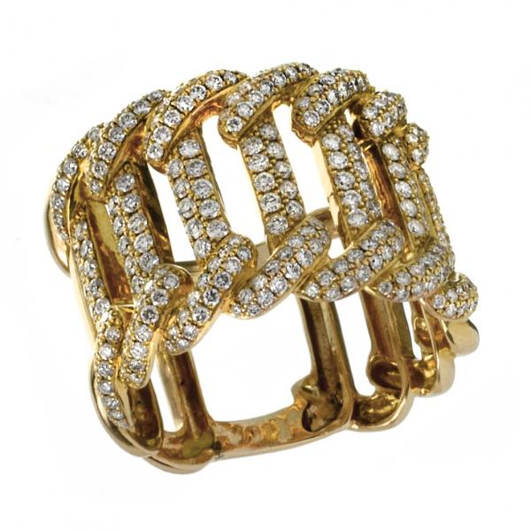 Prsten z růžového zlata zdobený brilianty. Au 750/1000, hmostnost: 11,00g, celková hmotnost briliantů 2 ct (kvalita VS, barva G). 2. polovina 20. století. Velikost prstenu: cca 56.