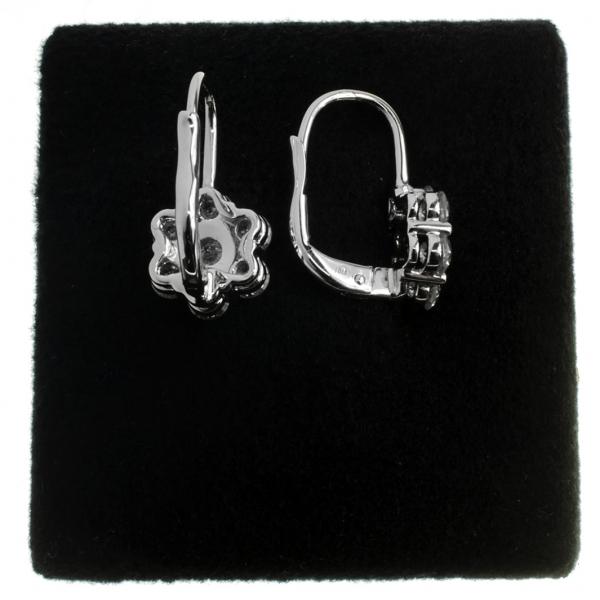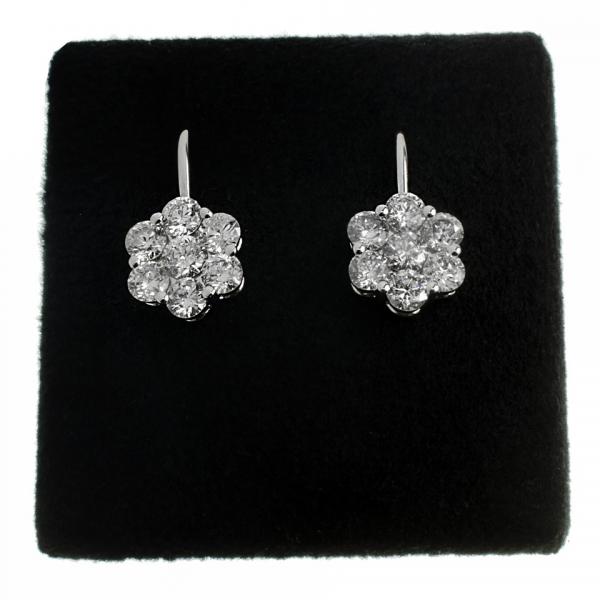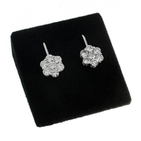 Náušnice z bílého zlata zdobené brilianty ve tvaru kytičky. Au 585/1000, hmotnost: 3,26g, celková hmotnost briliantů 2,18 ct (čistota Si, barva H). Čechy, 2. polovina 20. století. Délka: 1,7 cm, průměr kytky: 1 cm.