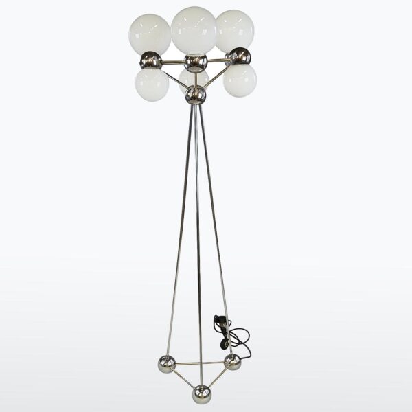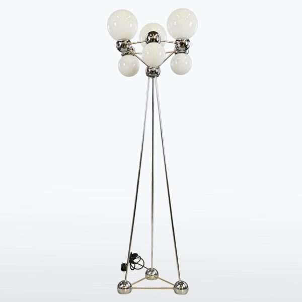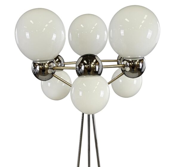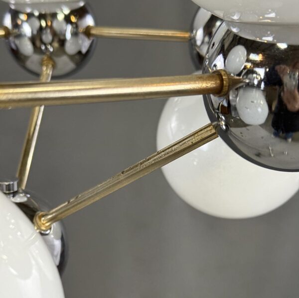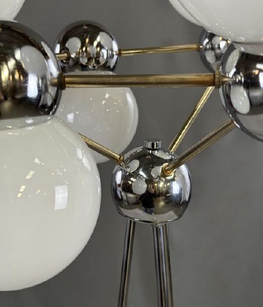 chromovaná ocel, opálové sklo, stínidla: 7× opálová koule,