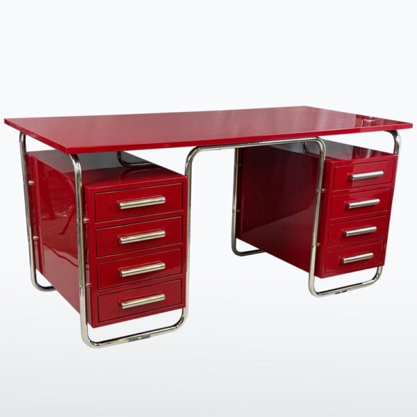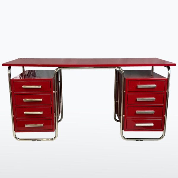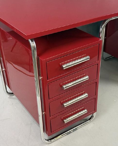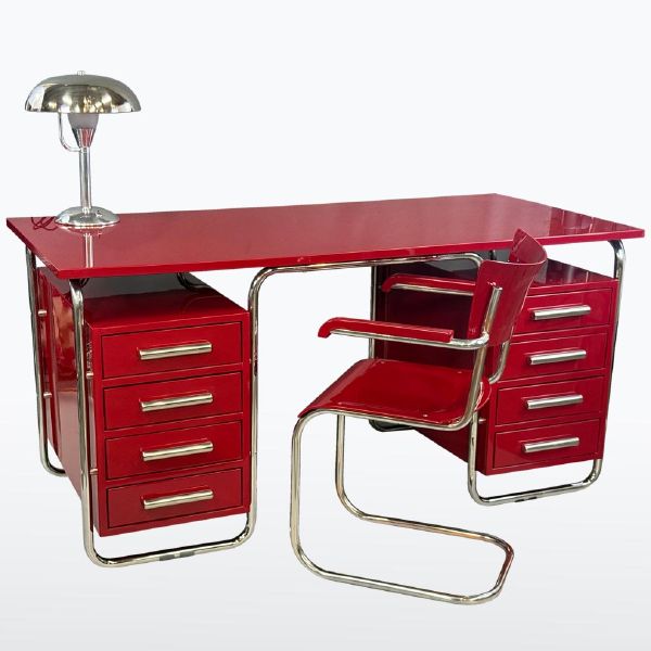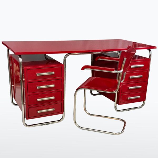 Starožitnost: Chromový trubkový psací stůl s křesílkem