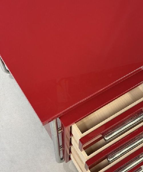 Použitý materiál: bukový masiv, chromovaná ocelová trubka, chromované kování, velmi kvalitní povrch – polyuretanový lak, který je leštěný do vysokého lesku.