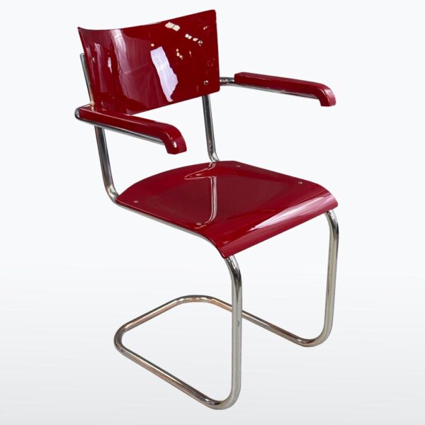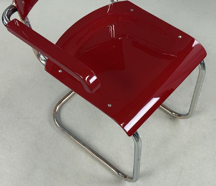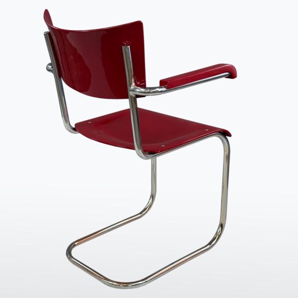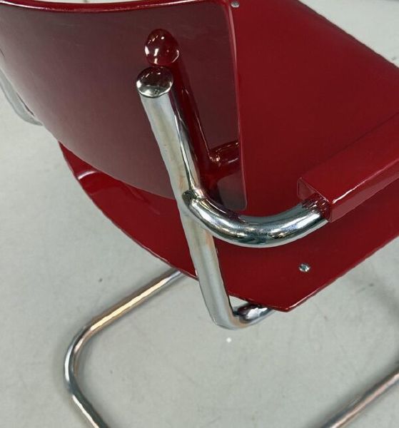 Křeslo má původní chromovanou konstrukci – znatelné stáří.