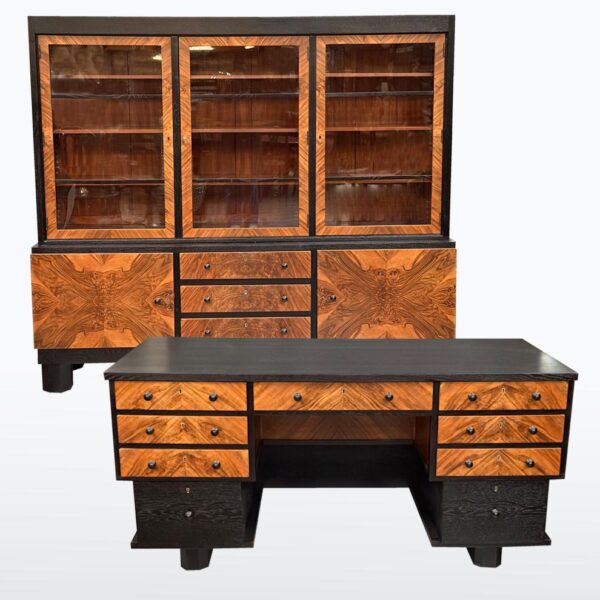 Soubor pracovny (knihovna, psací prostorový stůl), vyrobeno okolo r. 1925,...