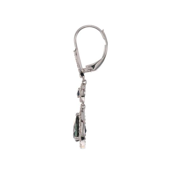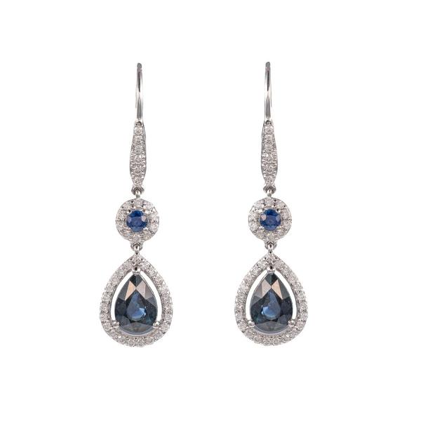 Bílé zlato o ryzosti 585/1000 | váha 2,71 g | výška s ouškem 3,1 cm | šířka 0,8 cm | přírodní diamanty 0,41 ct | přírodní safíry 1,84 ct | výborný stav | nová práce | puncováno platným puncem | kameny s garancí pravosti zkontrolované v gemologické laboratoři